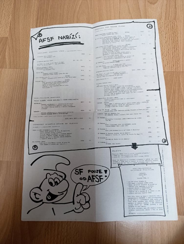 informační zpravodaj SF s kresbou Káji Saudka, jednostránkové A3 "noviny" pro fanoušky